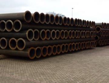Productie van bijna vier kilometer perspijp voor een baggerleiding in Algerije. Alles bij elkaar hebben we 330 buizen gemaakt, en twee keer zoveel flenzen aangelast. Aanlevering was ruim binnen de gevraagde termijn van 8 tot 10 weken.